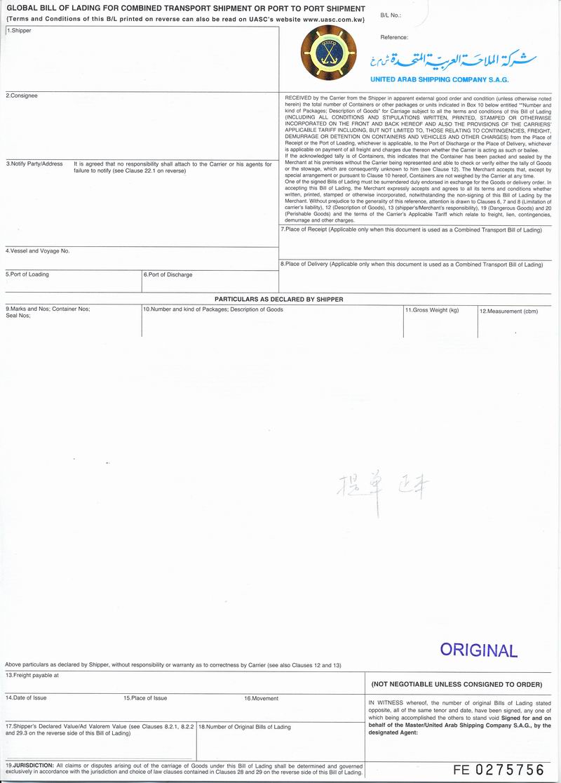 | 阿拉伯船公司简介: | 阿拉伯联合国家轮船公司(UASC)成立于1976年,由6家阿拉伯地区各国家的航运公司出股组成的。公司总部设立于科威特。阿拉伯联合国家轮船公司在中东地区的干散货海运上,是世界上最大的公司。 该公司将自己定位在一个为客户提供顶级的海运服务公司,无论是海运的高潮还是低谷。阿拉伯联合国家轮船公司在多年的不断发展中,逐渐的积累经验,不断的壮大,已成为世界上规模较大的海运公司,无论是在集装箱运输还是散货运输。 UASC是世界上干货到中东最大的海运承运人。 UASC为它的客户提供了一流的服务,便捷的方式和安全的运输。 |