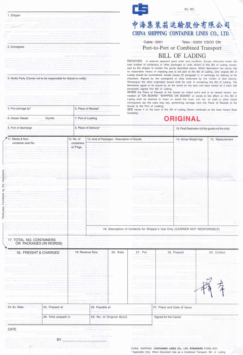 | 中海船公司提单图片: |