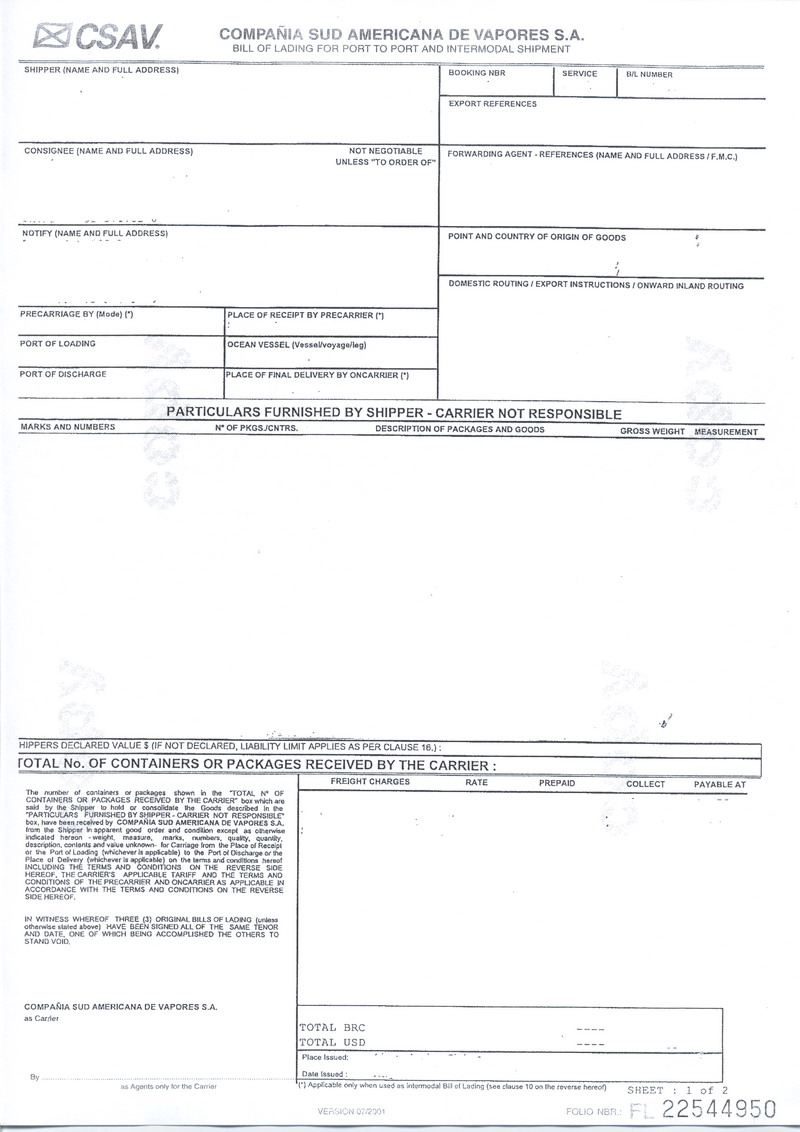 | 智利南美船公司简介: | 南美轮船CSAV(南美邮船)公司是目前南美洲最大的船运公司,它成立于1872年,是一家总部设在智利的船运贸易企业。 CSAV(南美邮船)也是世界上最古老的船公司之一。 CSAV(南美邮船)的业务由最初的南美沿海的航运运输服务开始,之后在巴拿马运河开放之前就迅速扩展到覆盖整个南美洲各大海港的海运运输服务。 |