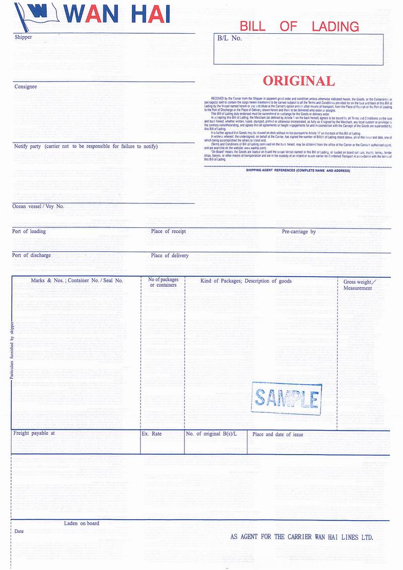 | 万海船公司提单图片: |