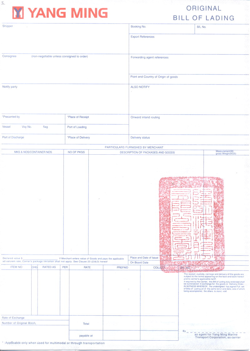 | 阳明船公司名称: | 阳明海运股份有限公司 |