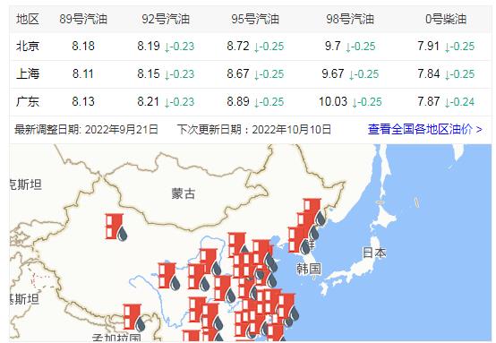 2022年10月3日:北京今日89汽油价格为8.18元/升,92号汽油售价为8.19元/升,北京95号汽油售价为8.72元/升,北京0号柴油售价为7.91元/升。