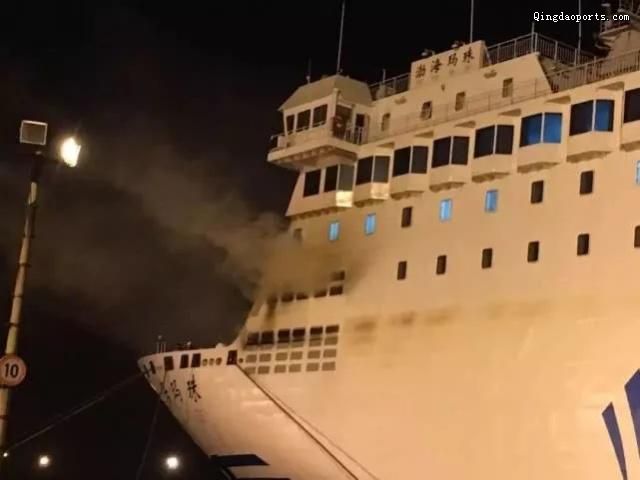 山东烟台港一客滚船突发大火,途中紧急返航,乘客全部安全撤离!