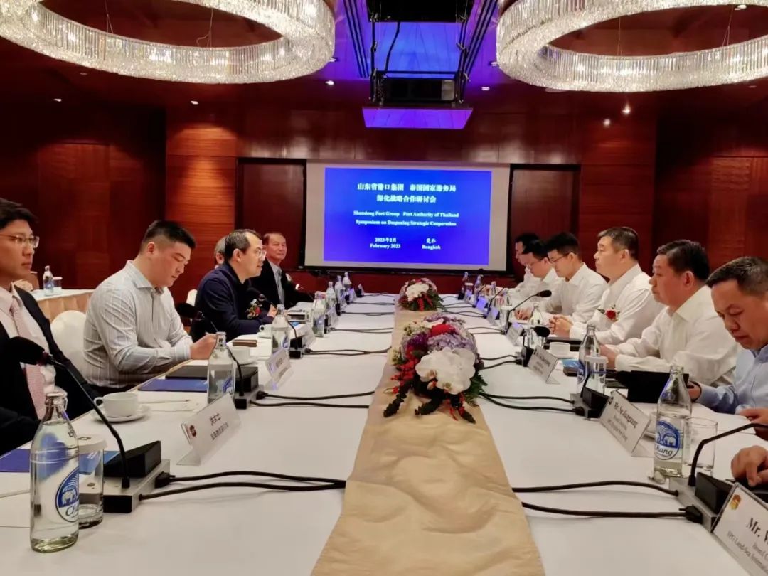 2月12日-13日,集团公司党委书记、董事长霍高原率团赴泰国,先后拜访泰国国家港务局、泰国五福集团及中国驻泰国大使馆,与泰国国家港务局局长克林凯围绕在港口建设发展、智慧绿色港口建设等领域深化战略合作进行座谈;与五福集团董事长陈树铭、首席执行官柏旺兴围绕推进集装箱运输、供应链建设、产业园区建设等进行有针对性的交流;向中国驻泰国大使馆经商处公参王立平介绍山东港口一体化改革发展情况,并进行座谈交流。